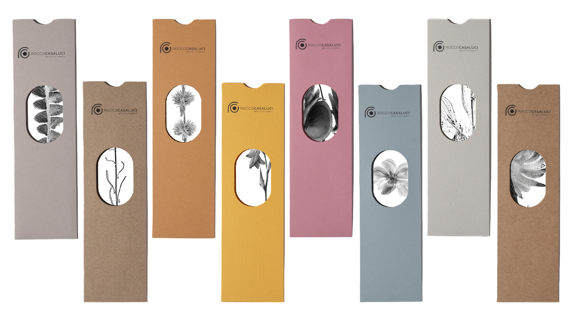 Accanto alle stampe, il progetto comprende anche piccoli oggetti editoriali, come kit segnalibro, concepiti come estensioni materiali della stessa ricerca.
